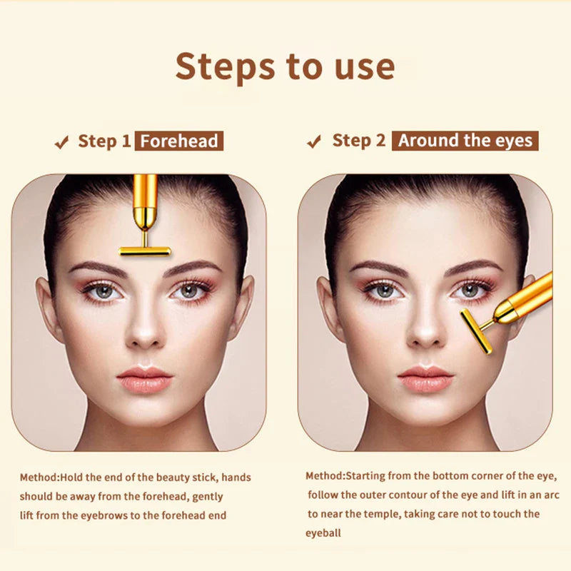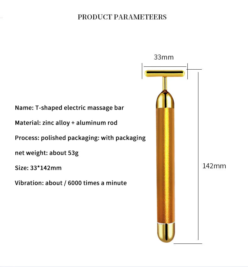 Masażer twarzy T-kształtny, wibracyjny, 24K, elektryczny, ujędrnianie skóry